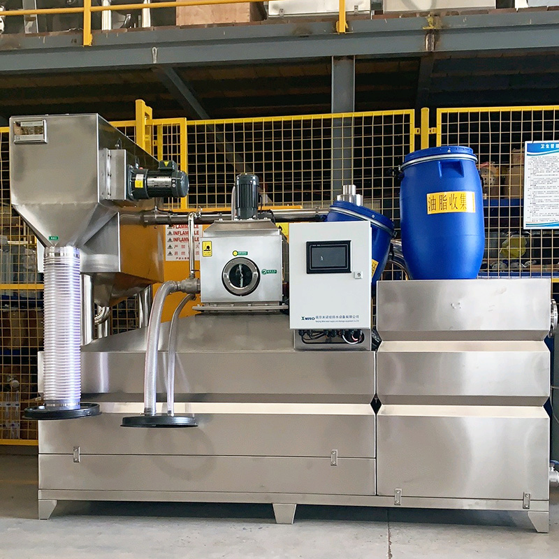JMQ-M7型高效隔油提升一体化设备配备自动除渣器、自动搅拌、自动加热、恒温保温功能。设备箱体全部采用不锈钢加强型结构,设备摆放到位后接驳设备房预留的下水管、排水管和通气管,通电后即可投入使用。